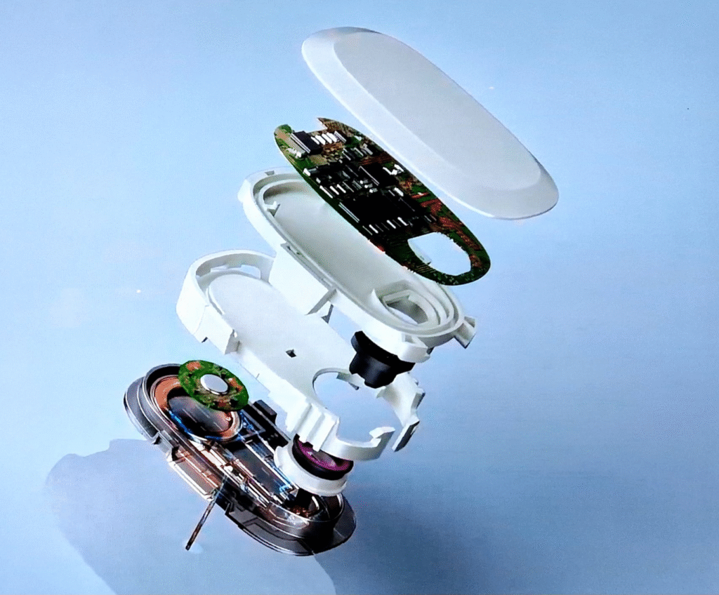 - Transmitter – a reusable, three-year device that collects sensor data and communicates securely via Bluetooth.
